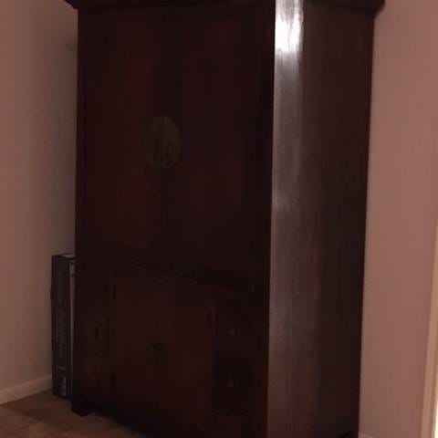 Træskab i massivt fyrretræ. Skabet har fyldningslåge og synlig træstruktur med naturlig finish. Velegnet til opbevaring i fx stue, soveværelse eller entré. Klassisk, enkelt design der passer ind i mange typer indretning.