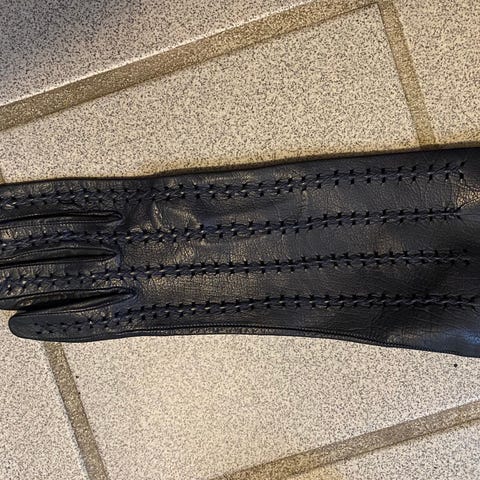 Korte skindhandsker i lækker blød skind - uden for - med fint hulmønster med brugs spor.