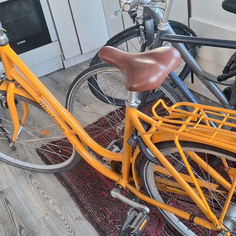 NB: Der et lille hul på sædet, men som ikke har den store betydning (se billede). Derudover er bagdækket er fladt på billedet, men slangen er efterfølgende skiftet og pumpet med luft.