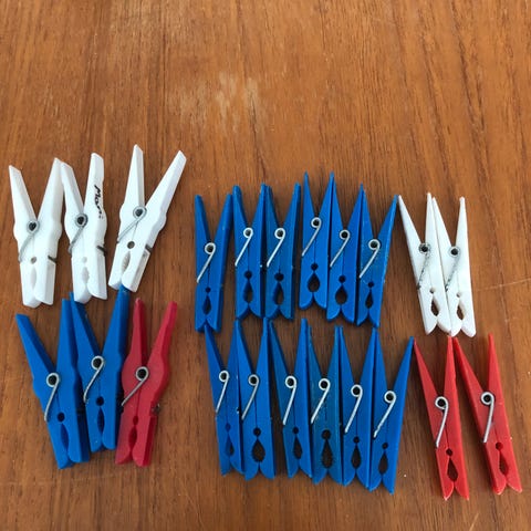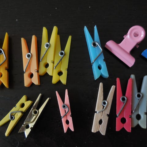 Andre samleobjekter, Små plastikklemmer, 10 små plastklemmer i forskellige farver