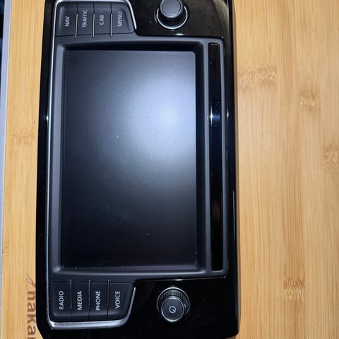 Navigon GPS navigation til Volkswagen. Enheden har skærm med Volkswagen-startbillede og medfølgende holder. Egnet som navigationsenhed i bil med kompatibelt Navigon/Volkswagen-system.