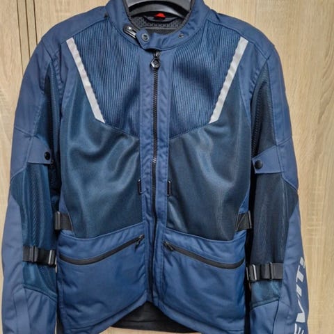 Rev’it motorcykeljakke med Gore-Tex i grøn farve. Aquadefense-ventilationsåbninger med lynlås foran og bagpå samt justeringsmuligheder i livet. Inkl. udtageligt vintertermoforing, albue-, skulder-, ryg- og frontbeskyttelse. Har været brugt som passagerjakke i en sæson.