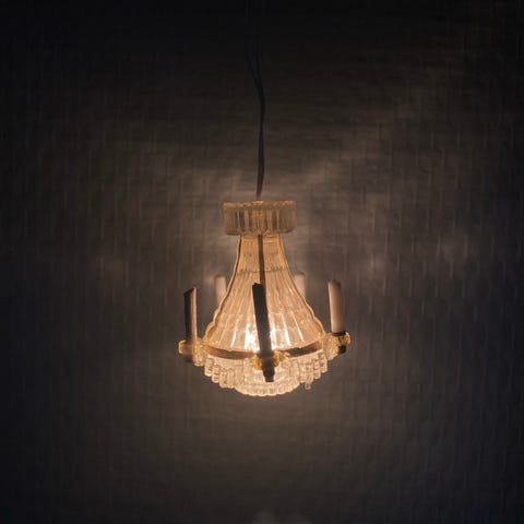 Mindre lysekrone med glaskæder på.