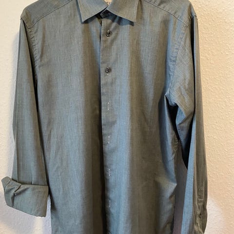 Skjorten har lange ærmer med knaplukning ved manchetterne og knapper ned foran