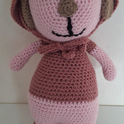 Hæklet plysdyr æsel med bold grå