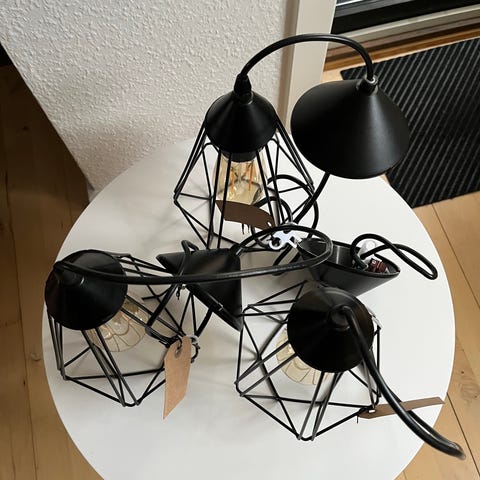 3 stk loftslamper i sort jern/net inkl pære.