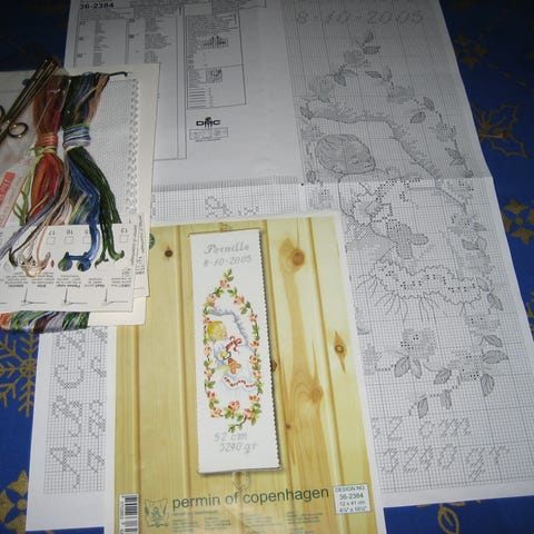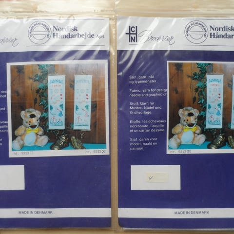 Broderi, barne ophæng til barnedåb, barne billede til barnedåb med mønster garn og stof se billede kan sendes med gls + porto
