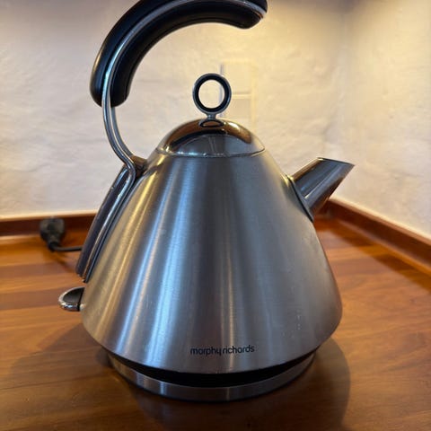 Russell Hobbs elkedel i Denne elkedel er en Russell Hobbsmodel, fremstillet i børstet rustfrit stål med kobberfarvede detaljer.