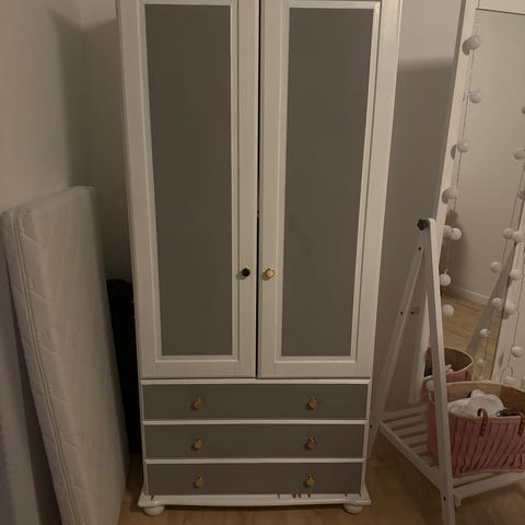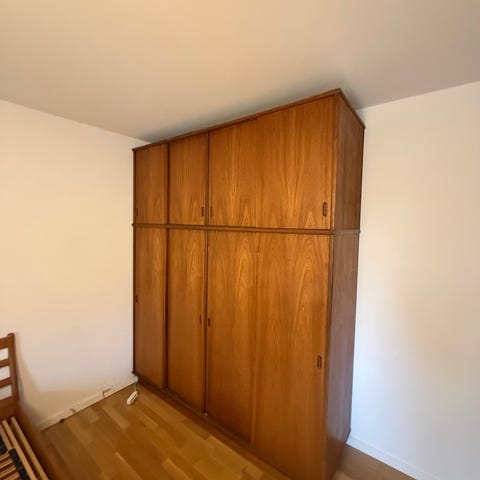 Super fint HTH 4 fløjet, klædeskab i 60cm x ca. 210cm, hvid front med kirsebær kant, SKAL NEDTAGES SELV d. 15/3 over middag