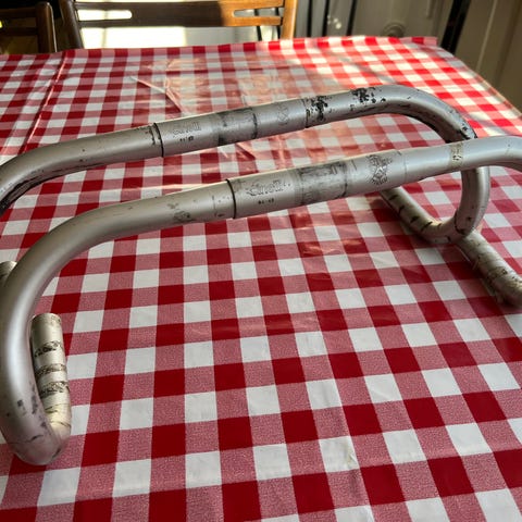 Cinelli Giro d’Italia racerstyr i sølvfarvet finish. Klassisk landevejsstyr med rund bøjning, velegnet til racercykler og klassiske stålrammer.