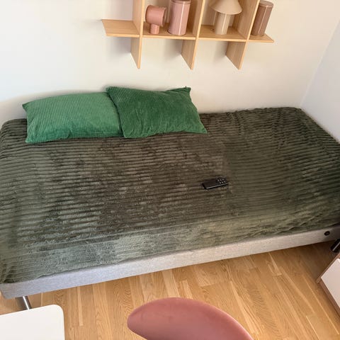 Jysk Dreamzone elevationsseng i målene 80,5 x 190,5 cm. Sengen har gråt tekstilbetræk og trælameller i bunden. Inkluderer elektrisk elevation, som kan styres via medfølgende fjernbetjening. Velegnet som enkeltseng eller til mindre rum, gæsteværelse eller ungdomsværelse.