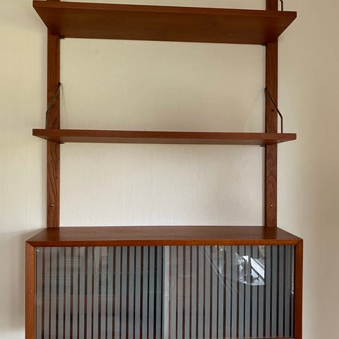 2 stk. teaktræs vægreoler, retro. Fine detaljer ved håndtagene. De måler hver ca. 1.70 i højden. Ca. 80 cm. i bredden og ca. 30/44 cm. i dybden. De er dybere forneden end foroven. Almindelige brugsspor som følge af alder. Sælges helst samlet. Prisen er for dem begge to. De skal hentes og man skal selv bære dem ud fra et rækkehus.