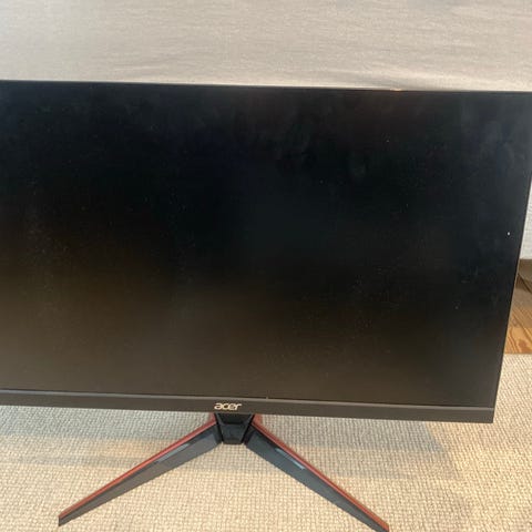Acer EB247Y skærm på 24 tommer i sort. Skærmen har rektangulært panel og står på en justerbar fod. På bagsiden findes strømtilslutning og standard videoindgange (se billeder for stiktyper og modeloplysninger). Velegnet til almindeligt kontorarbejde, internetbrug og generel pc-brug. Modeloplysninger og serienummer fremgår af mærkaten på bagsiden af skærmen.