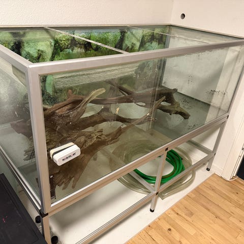 Akvarium med lampe og dekoration