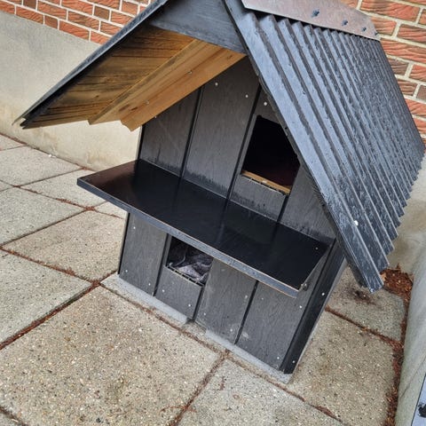 Omlet kattegård til haven. Kan stå frit eller placeres op ad huset, så man kan åbne terrassedøren direkte ud i kattegården.