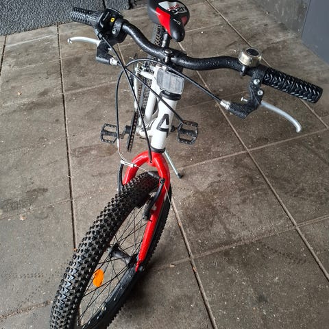 Cykel med 20" hjul i sort og blå. Passer typisk godt til 4-6 årige. Den har skærme, pedaler med reflekser samt reflekser i hjulene. Den kører godt. Der er luft i dækkene, og den er klar til brug. Prisen er ikke til forhandling.