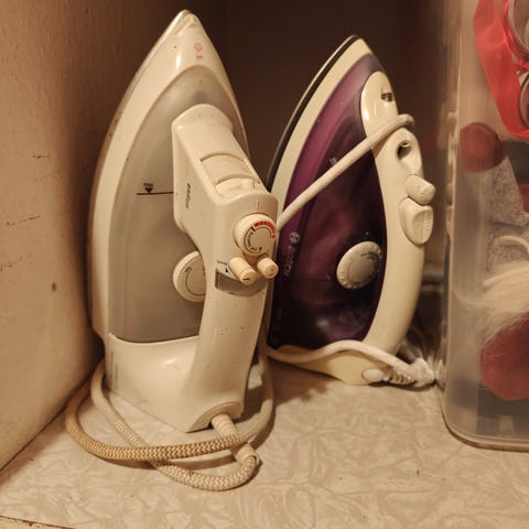 Ledningsført model med vandtank til dampfunktion og justerbar temperaturregulering.