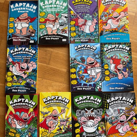 Kaptajn Underhyler 1-12 af Dav Pilkey, hardback, alle i god stand