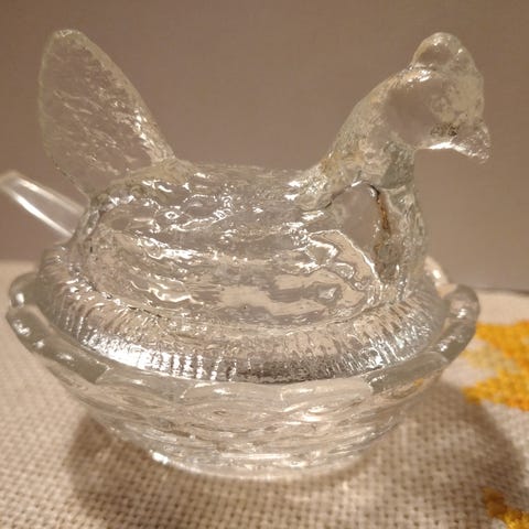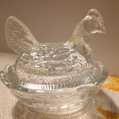 Fransk glashøne i klart glas 🐣 Den er uden fejl. Længde 12 cm. Højde 12 cm.