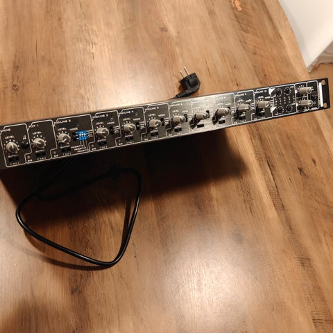 Tilslutninger: Den har fire indgange til mikrofon eller linjesignal samt en AUX-indgang.