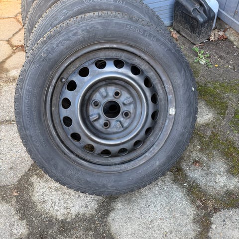Sommer dæk med stål fælge som passer til mange små biler, som Toyota Aygo, Corolla, C1, Kia picanto, Peugeot 107,108 osv fejler ikke noget klar til montering. Har kørt kun en season. Pris for alle 4 stk.