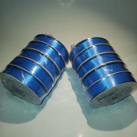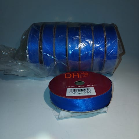 Satinbånd blå 15 mm bred 10 m lang 9 rulle 45 kr