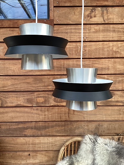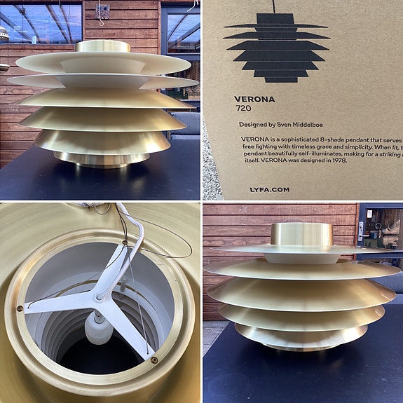 Pendlerne er monteret med den originale top, men uden bundskærm. Toppen kan sættes på bundkraven, hvis du foretrækker dette - som vist på første og sidste billeder, hvor én er monteret med toppen, i toppen og den anden i bunden - formsproget er derved forskelligt.