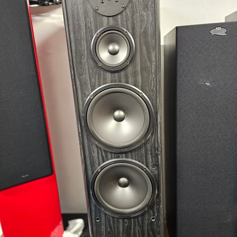 Sorte højtalere med forstærker. Spiller lækkert, dog for store i min kærestes mening🥲