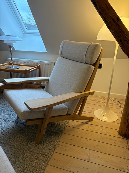 Hans J. Wegner GE290A lænestol i eg med nyt hyndesæt
