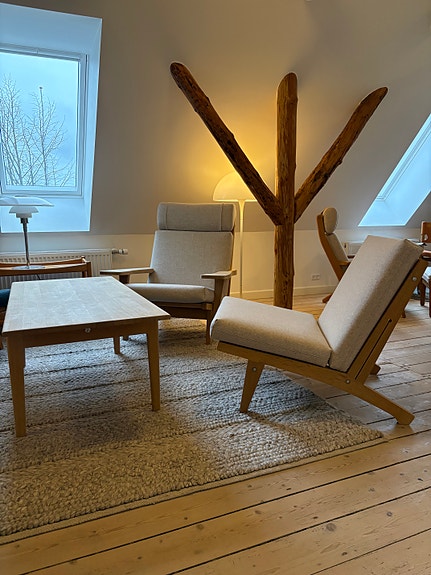 Den lave GE370 lænestol er istandsat på samme vis og sælges til 11.000kr