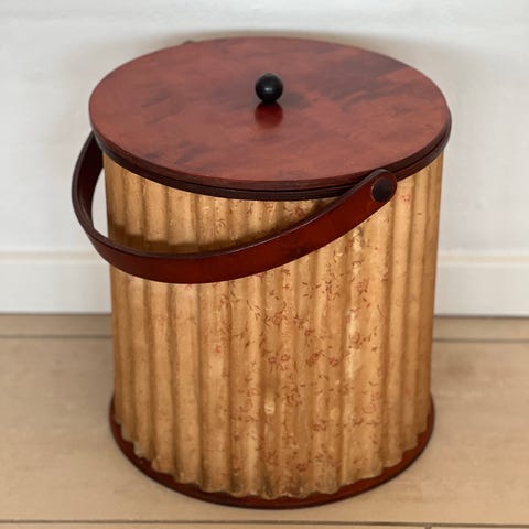 Sammenfoldig retro Strikketøjskurv i teak.