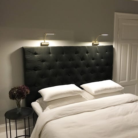 Den er i pæn stand og meget behagelig at sidde op ad, hvis man fx læser eller ser tv i sengen.