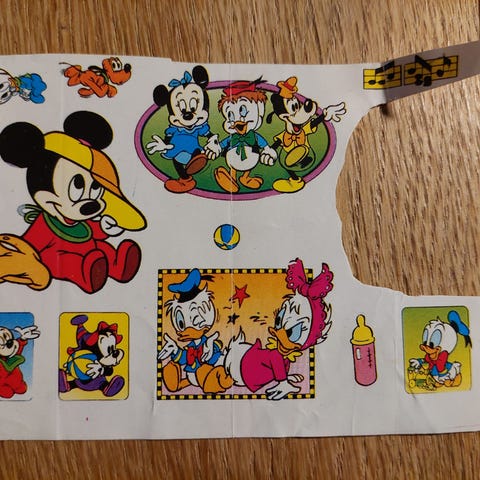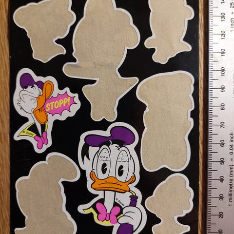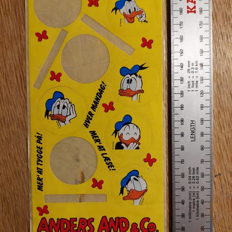 Restark med klistermærker fra et ældre Anders And blad.