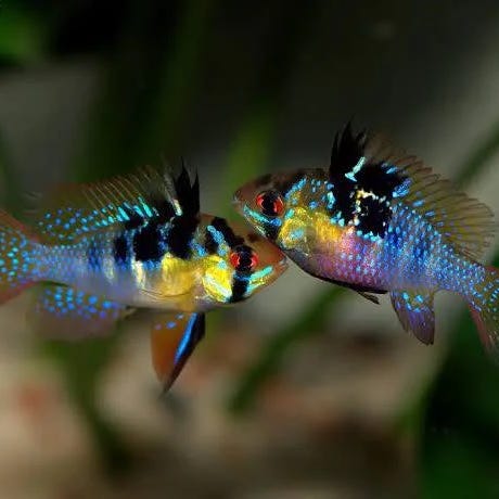 Sund, rask og vel ernæret eksemplarer. De vil gå fint sammen med discus fisk og andre rolige sydamerikaner som fx. Sommerfugl cichlider, geophagus, guppy, molly, maler, pansermaller mm.