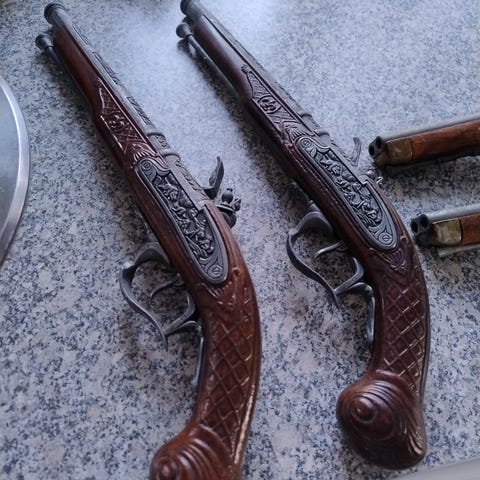 Flintlås Pistoler 3 stk kopier til dekoration,i autentisk størrelse.