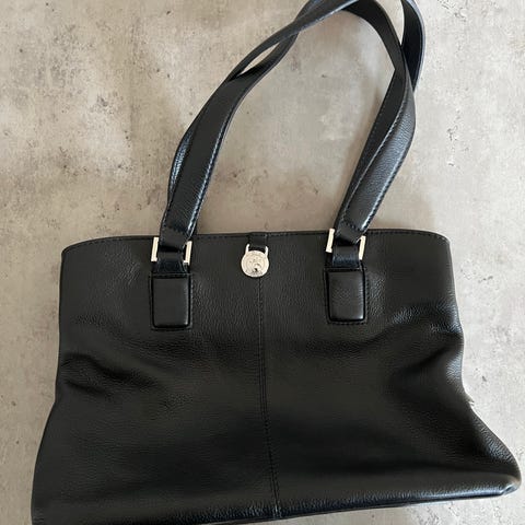 & Other Stories lædertaske til kvinde i sort. Tasken er udført i glat og let struktureret læder med både korte hanke og en længere skulderrem. Den har lynlåslukning øverst samt yderlomme med lynlås. Velegnet som hverdagstaske eller arbejdstaske med plads til personlige ejendele og mindre accessories.