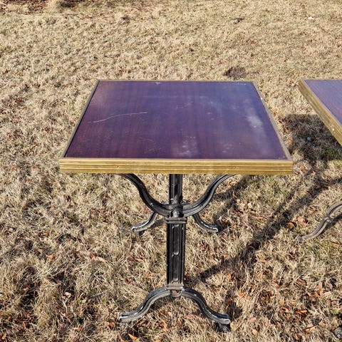 Gammelt fransk cafebord med træplade og messingkant