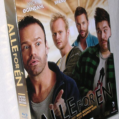 Alle for én / Blå mænd Blu-ray + DVD. Udgave med begge film samlet i ét sæt, hvor både Blu-ray og DVD-diske indgår. Dansk komedie med danske skuespillere, med ekstramateriale som blandt andet bag om filmene og diverse bonusklip, jf. omslagstekst.