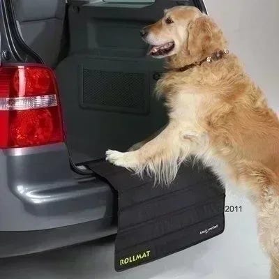 Med denne smarte "Rollmat" sikrer du at bilens kofanger ikke bliver ridset, samt at hunden kan hoppe sikkert ind i buret.