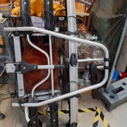 Thule EuroWay 923 cykelholder til anhængertræk. Modellen har plads til 3 cykler og er udstyret med lygter og nummerpladeholder, har nøgle til aflåsning og vippefunktion. Den er brugt en del, heraf prisen