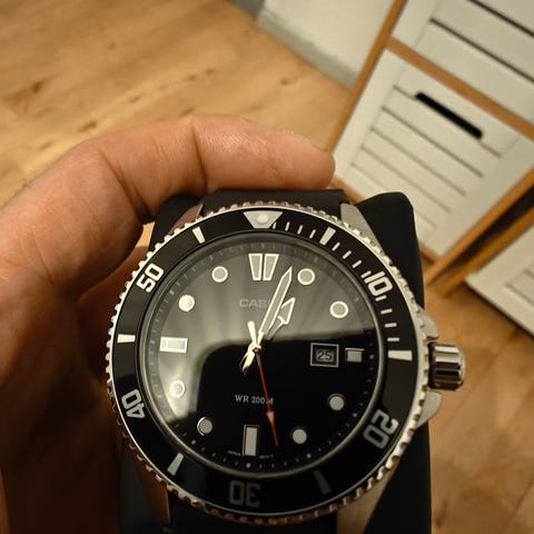 Casio herreur analogt med sort skive og stållænke