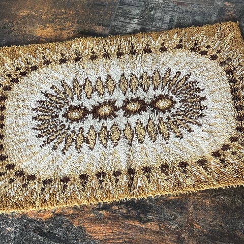RYA tæppe med motiv i røde og sorte nuancer. Tæppet har et tæt, langluvet mønster med figurative detaljer i kontrastfarver. Velegnet som gulvtæppe eller dekorativt vægtæppe i stue, entré eller soveværelse.