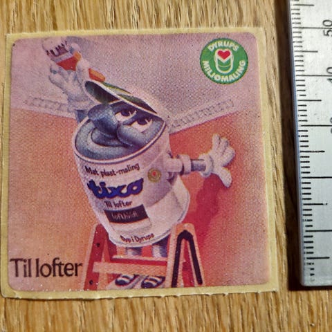 Reklameklistermærke fra 70'erne for Dyrups miljøvenlige maling Hitt.
