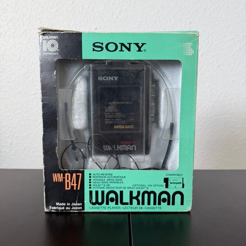 Sony TCS-350 fra 1983, stereo kassetteafspiller med bærereim og tilhørende beskyttende etui. Enheden har kassettekammer til standard lydkassetter, betjeningsknapper på siden samt tilslutninger til hovedtelefoner og mikrofon. Egnet til afspilning af musik eller taleoptagelser. Leveres med etui, som beskytter afspilleren under opbevaring og transport, den kan køre kassettebåndet rundt og kan spole fremad, men ingen lyd, den kunne spille meget langsomt indtil jeg skiftede drivremmen, jeg er ikke ekspert i det, måske har jeg samlet den forkerte? Ingen spor efter batteri syre, det er nok mest til samlere af walkman, den har brugsspor, men fint til en udstilling, medfølger nogle kassettebånd.