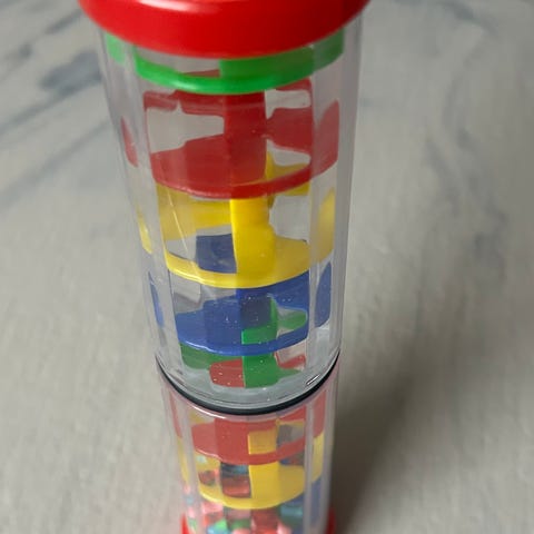 Et sæt af farverige plastik stablekopper, ideelle til småbørn og børn for leg og læring. Kopperne kommer i forskellige størrelser og farver, herunder blå, grøn, orange, rød og gul, og kan stables inden i hinanden. Den største kop har et bogstav 'H' på siden. Kopperne måler mellem 7,5 cm og 5 cm i diameter. Disse kan bruges til motorisk udvikling og farvegenkendelsesaktiviteter.