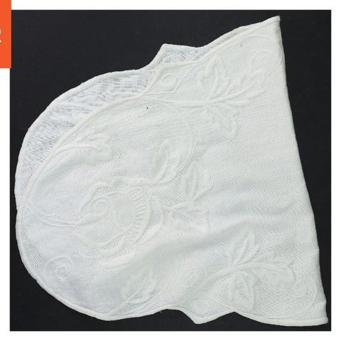 To hvide servietter med broderede bladmønstre i hjørnerne. Servietterne måler 26x25 cm og er lavet af et let stof med perforerede detaljer til dekoration.