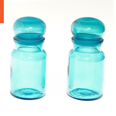 To rurkise apotekerglas med låg)