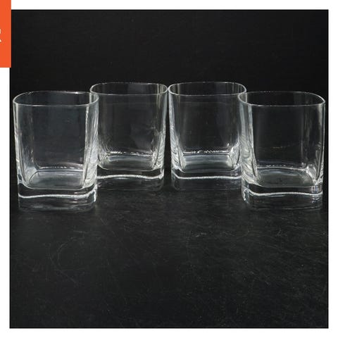 Sæt bestående af fire klare, firkantede glas. De er fremstillet i klart glas med en størrelse på 9x6 cm. Glassene er velegnede til servering af vand eller drinks.