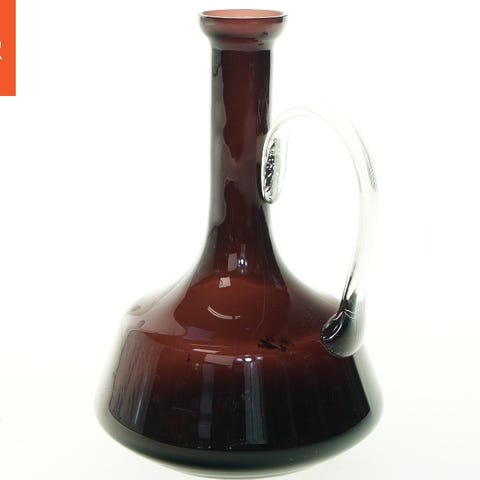 Dekorativ glasflaske med prop og indre strukturer der skaber en visuel effekt.