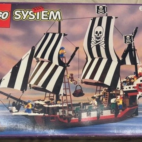 Lego sæt 6278 Pirates 1994, 6 minifigurer, komplet og ubrugt, i en forseglet kasse, fremstillet i Danmark af plastik. Klik på den blå "gå til varen" knap, for at købe eller byde på denne vare. Den samlede pris vil blive vist inden du afgiver dit bud.